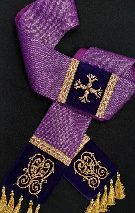 Stola met borduurwerk op fluweel, versierd met imitatiestenen en -parels