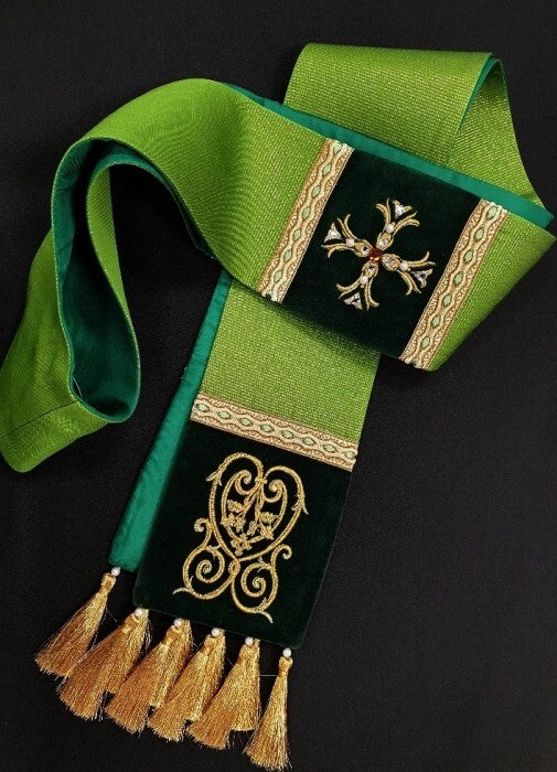Stola met borduurwerk op fluweel, versierd met imitatiestenen en -parels